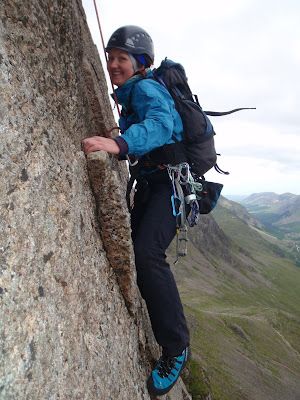 For the final day of weeks Lakes Classic rock we headed up to Gable Crag aiming for the intimidating Engineers Slab (VS 4c). Once again Siobhan was climbing with Paddy and Patricia was seconding me. Despite getting stuck behind a fairly slow team we made a good ascent breaking the route down into four small pitches. The traditional finish was looking very dirty so we climbed the far more satisfying and exposed slab and arete to the left.